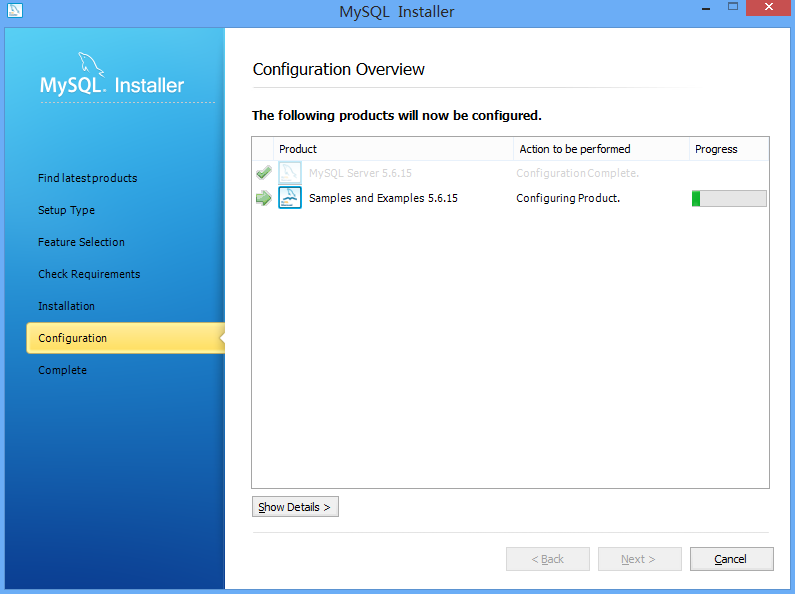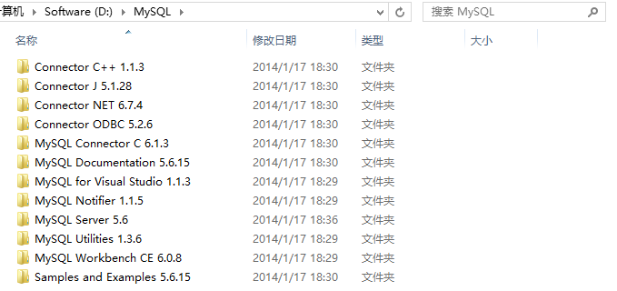 上图安装完成后,单击Next完成MySQL的全部安装。完成安装后的文件如下所示: