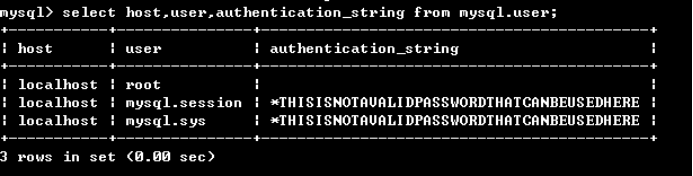 查询用户密码命令:mysql> select host,user,authentication_string from mysql.user;