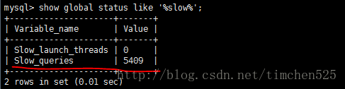 在MySQL中有一个变量专门记录当前慢查询语句的个数: