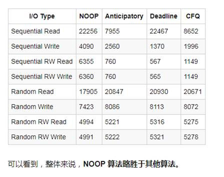 目前磁盘的调度算法有如下四种,我们系统中的配置值为deadline,很多资料上建议SSD配置为noop