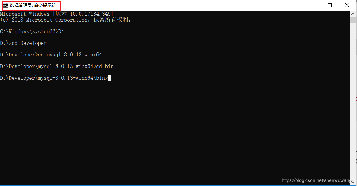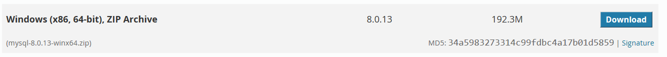 下载完成后将该压缩包进行解压,位置自定义,如:D:\Developer\mysql-8.0.13-winx64