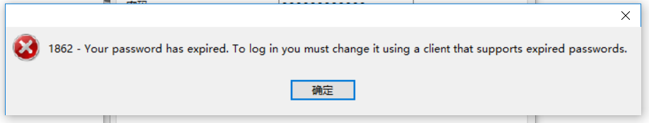 使用自动生成的密码有时候会很不方面,而且使用连接工具(如navicate)连接mysql时,可能会报密码过期,无法连接的问题,如图