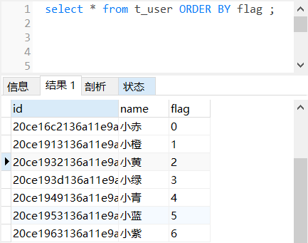 正常的使用升序查询结果是这样的: