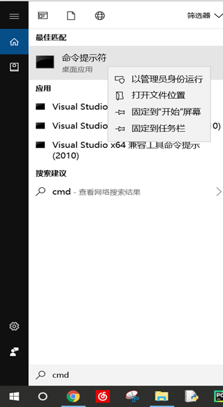 在Windows系统中以管理员方式运行命令行