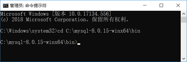 接下来通过命令行工具进入刚才解压的MySQL安装文件中的bin目录下