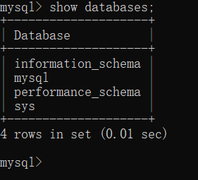 通过'show databases;'显示数据库中的内容,注意不要丢了英文分号
