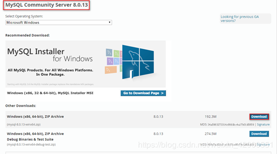 MySQL8.0.13 For Windows zip包下载地址:mysql-8.0.14-winx64.zip,进入页面后可以不登录。