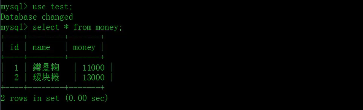 首先我们可以先查询下已有的money表中的信息字段,表信息如下图。