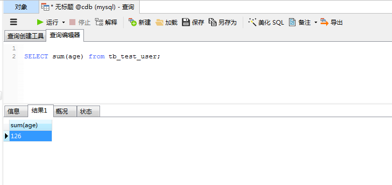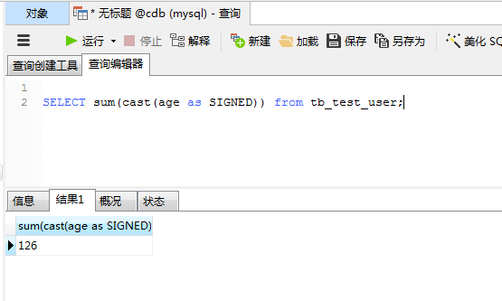 3、在数据量少的时候可以使用sum()函数直接求和,因为MySQL中它可以自动识别是字符串类型还是数字类型。