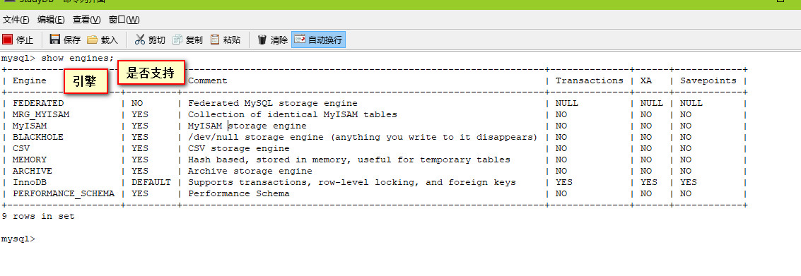yes就是支持,在InnoDB支持选项是DEFAULT(默认)也就说明,当我们创建数据库的时候默认引擎就是InnoDB