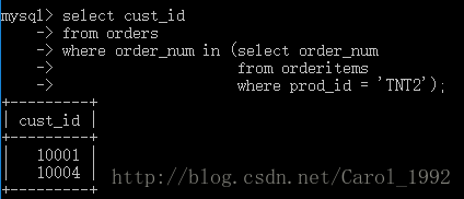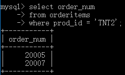 实例1:检索订购物品TNT2的所有客户的ID