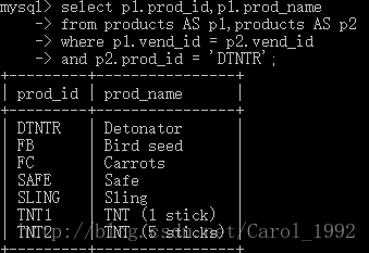 注意:表别名只在查询执行中使用。与列别名不一样,表别名不返回到客户机。