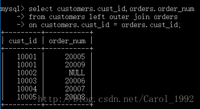 存在两种基本的外部联结形式:左外部联结和右外部联结。在使用OUTER JOIN语法时,必须使用RIGHT或LEFT关键字指定包括其所有行的表(RIGHT指出的是OUTER JOIN右边的表,而LEFT 指出的是OUTER JOIN左边的表)。上面的例子使用LEFT OUTER JOIN从FROM 子句的左边表(customers表)中选择所有行。