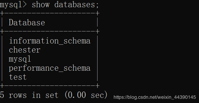 登陆后,输入show databases查看数据库中哪些库: