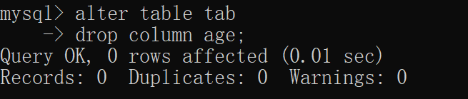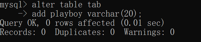 更新表的定义,给表加上一行使用alter table + 表名 的命令:
