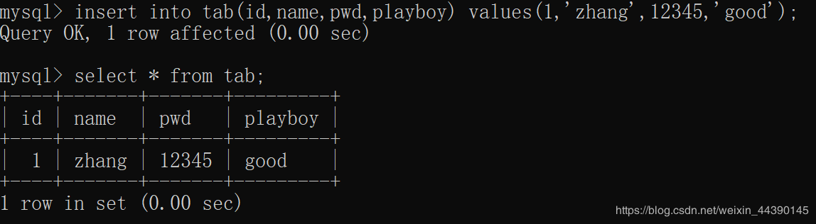 下面展示下插入一组完整的数据: