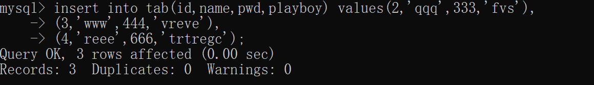之后要做的就是把多组数据同时插入到所建的表中去: