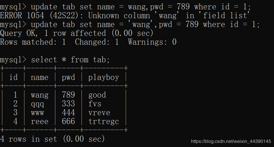 5.使用update语句更新某一列
