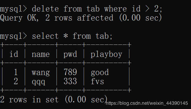 如果要把整个表都删掉,就直接输入: