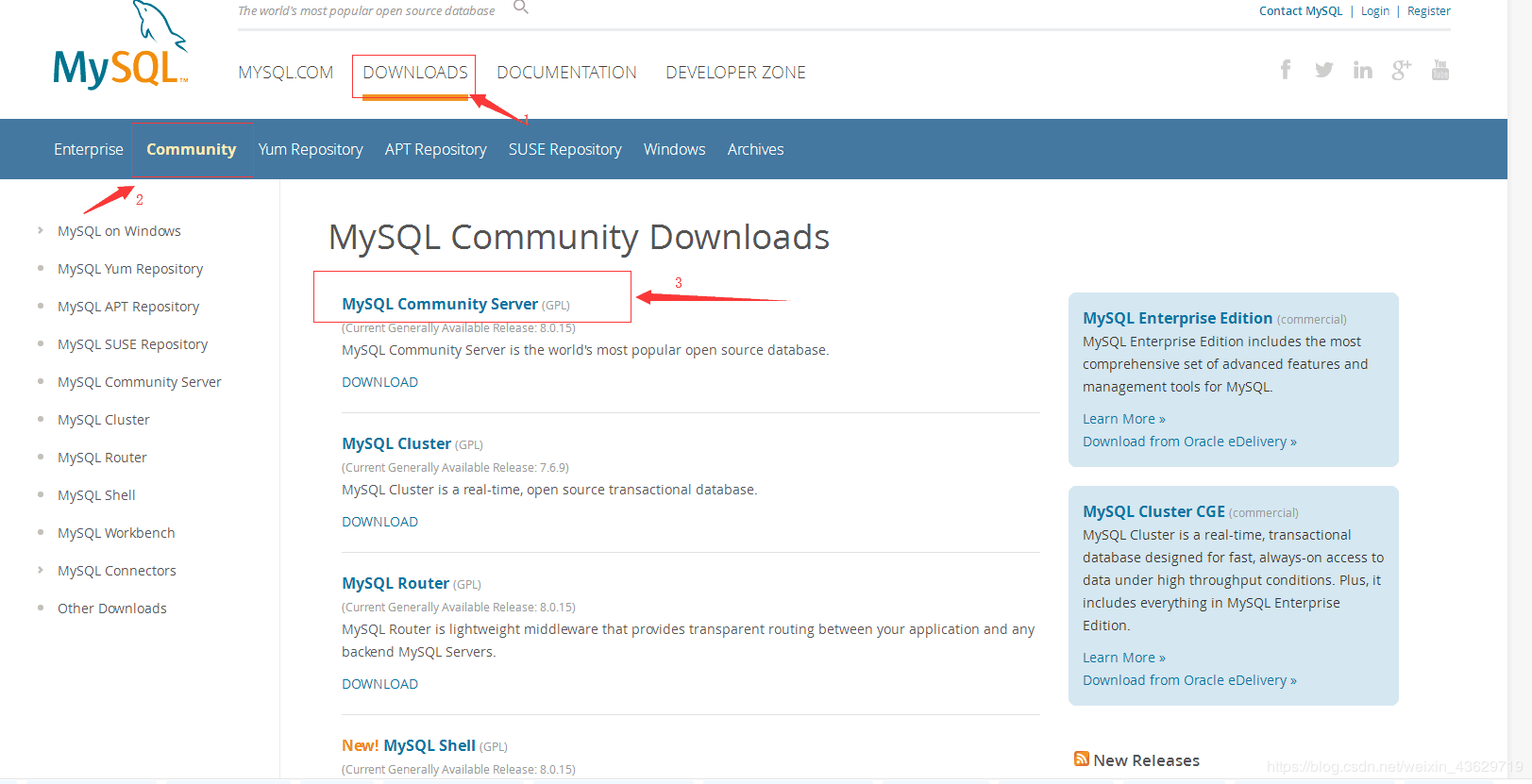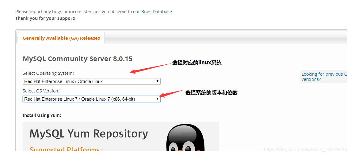 1.进官网,选择适合自己版本的linux下的MYSQL版本。