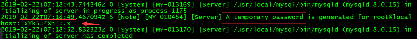 bin/mysqld --initialize --user=mysql --basedir=/usr/local/mysql --datadir=/usr/local/mysql/data //运行完成会生成一个暂时的密码