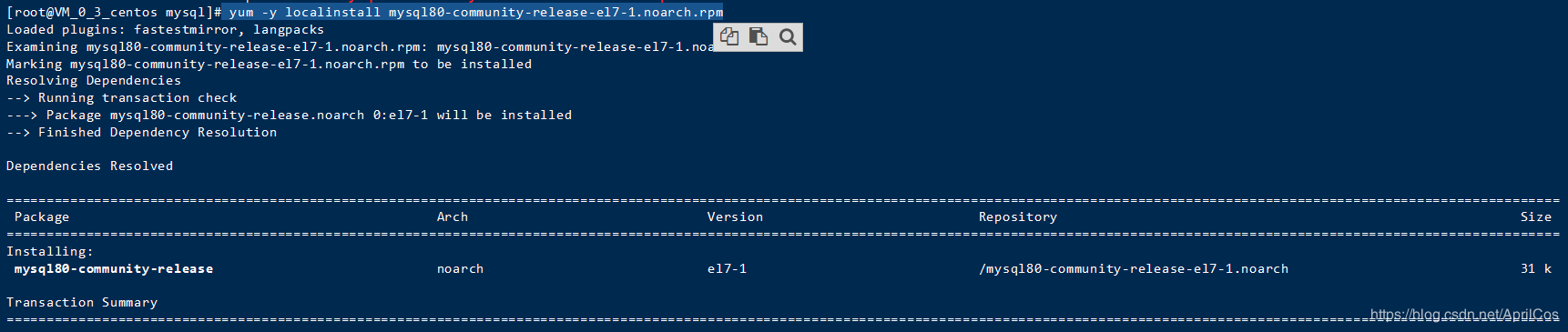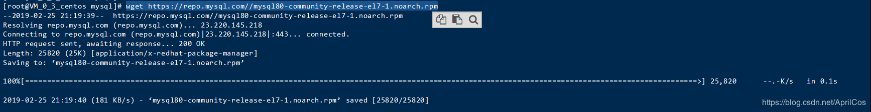 第一步,下载安装包 wget https://repo.mysql.com//mysql80-community-release-el7-1.noarch.rpm,其他版本自行去官网下载