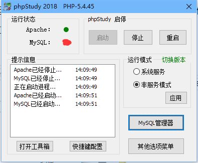 可是安装后却遇到一个麻烦事,就是这个Mysql启动后就会过几秒就显示Mysql已经停止(这个是我现在的我已经解决这个问题了,应该是个红色的方框,不要介意,/嘿嘿)。重启了很多遍。还是无法启动。