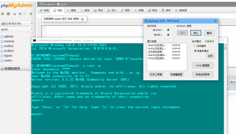 于是我想这样解决试试吧。把phpstudy里的mysql端口改为3307是不是就不冲突了,我改了,理论上来说是可以成功了,可是依然是原来那个样子。算了太麻烦了。换个方法吧!