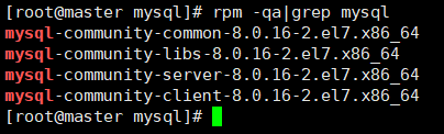 rpm -ivh mysql-community-common-8.0.16-2.el7.x86_64.rpm rpm -ivh mysql-community-libs-8.0.16-2.el7.x86_64.rpm rpm -ivh mysql-community-client-8.0.16-2.el7.x86_64.rpm rpm -ivh mysql-community-server-8.0.16-2.el7.x86_64.rpm
