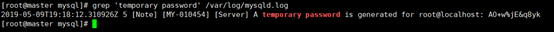 grep ‘temporary password' /var/log/mysqld.log