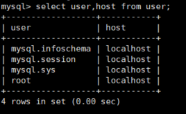 2)select user, host from user;
