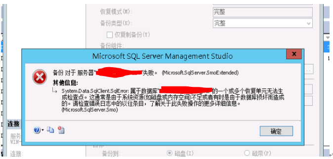 有一次在手动执行数据库完整备份时遇到如下错误: