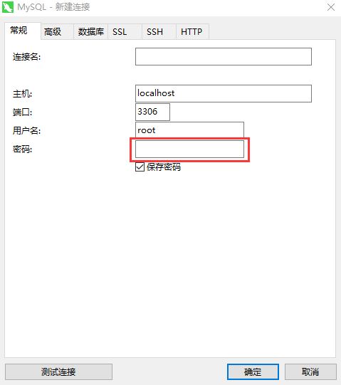2、在此处设置连接信息 下方密码是之前设置的root密码