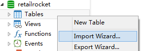 1、创建一个数据库,右键单击表,导入向导import Wizard。