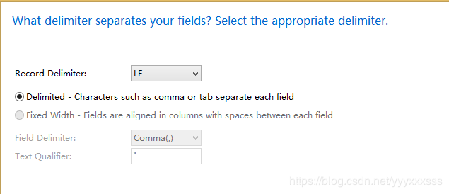 4、选择需要的分隔符,我用的Linux,所以record delimiter这个记录分隔符为LF,来表示下一行