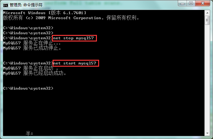 net stop 本机mysql服务名5、启动MYSQL服务