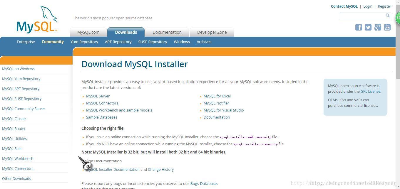 方法:官网下载 【Downloads–>Community–>MySQL on Windows–>MySQL Installer】