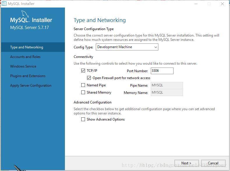 Cofig Type 选择Development Machine,设置协议,端口相关内容,点击Next。