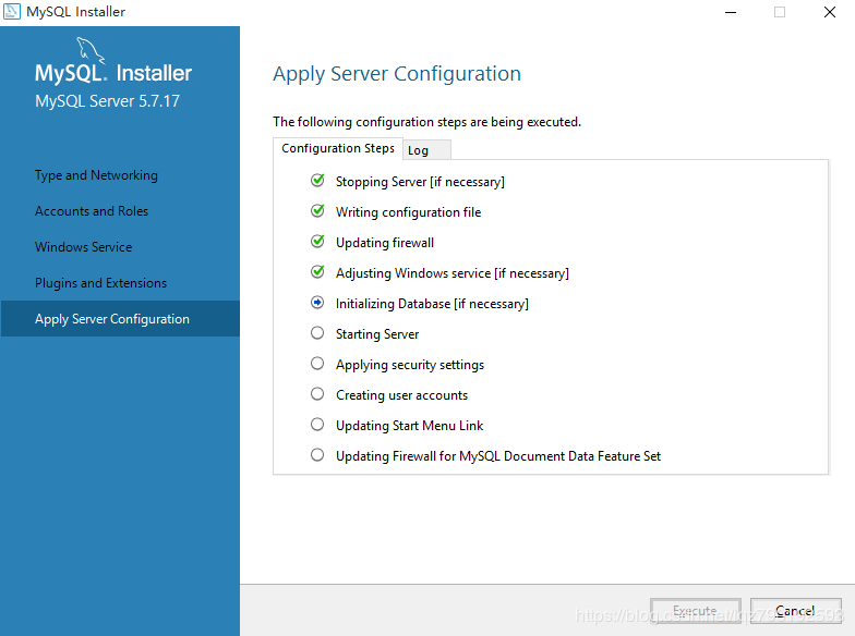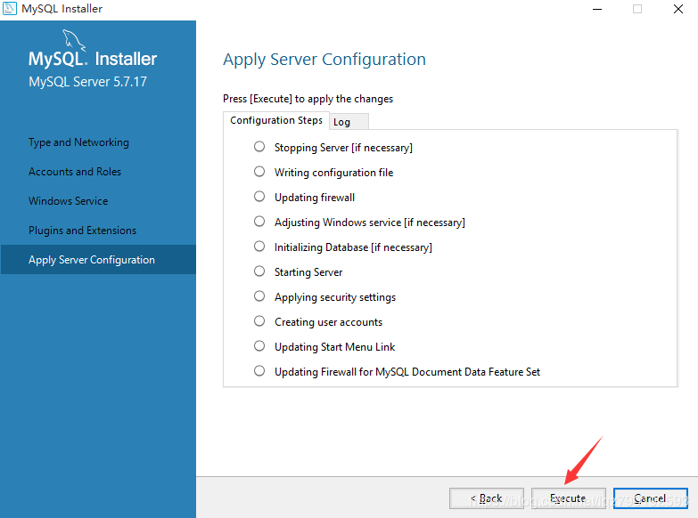 如上图所示,此界面为让咱们确认需要应用的服务器配置,确认无误后,点击Execute: