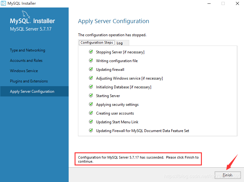 如上图所示,服务器配置完成,点击Finish: