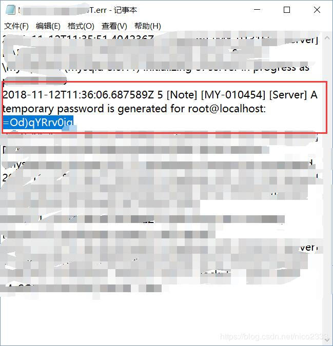 这个地方我也有点迷,明明在前面安装MySQL的时候有要你设置一个密码,但是其实那个密码貌似用不到,这个地方应该输入的是它自动生成的随机初始密码,而这个初始随机密码放在MySQL安装目录下一个.err文件里。也不算难找吧,整个文件夹里好像就这一个.err类型的文件,直接在文件夹里搜索就好了