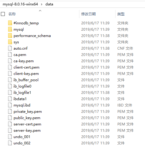 初始化Mysql配置之后,data目录下会生成相关文件,如下所示