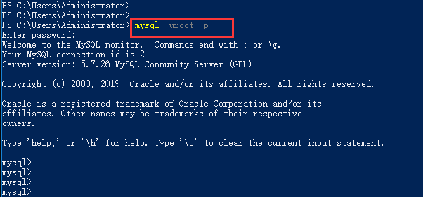 mysql -uroot -p