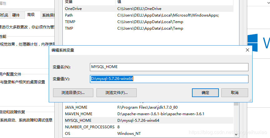 2、配置环境,加一个MYSQL_HOME变量,以及path里面新增路径%MYSQL_HOME%\bin;