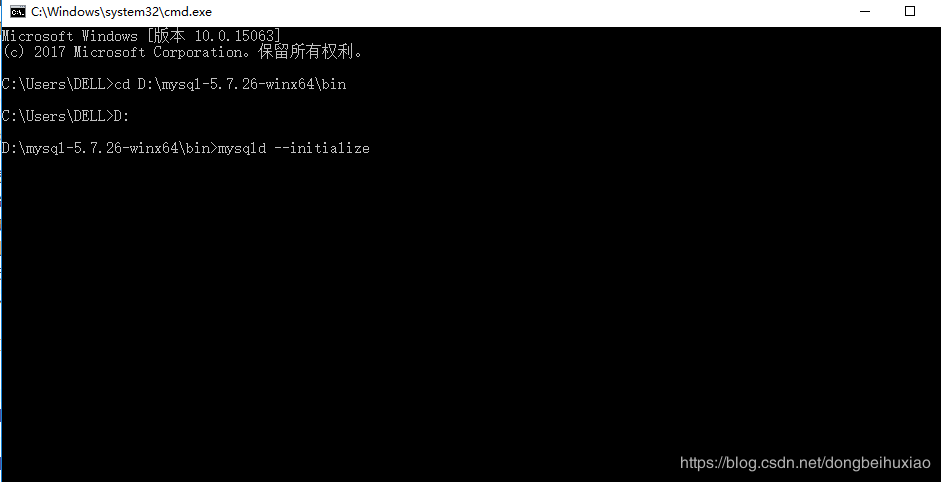 6、再次进入bin目录,运行mysqld --install,安装mysql