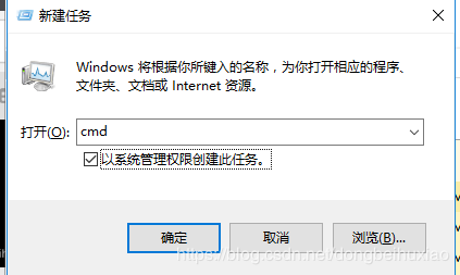 5、执行mysqld --install,但是突然出现了“Install/Remove of the Service Denied"这个错误怎么办?因为我们没有管理员权限,打开任务管理器-文件-运行新任务,选中“以系统管理权限创建此任务”