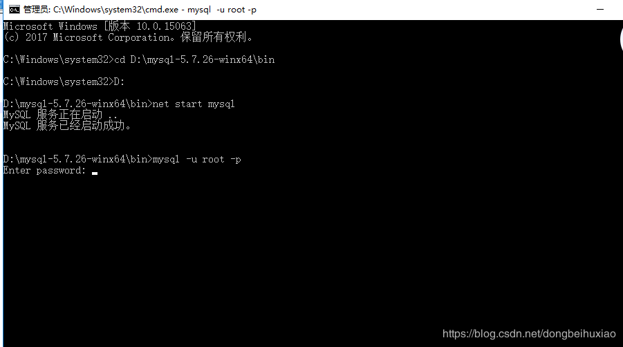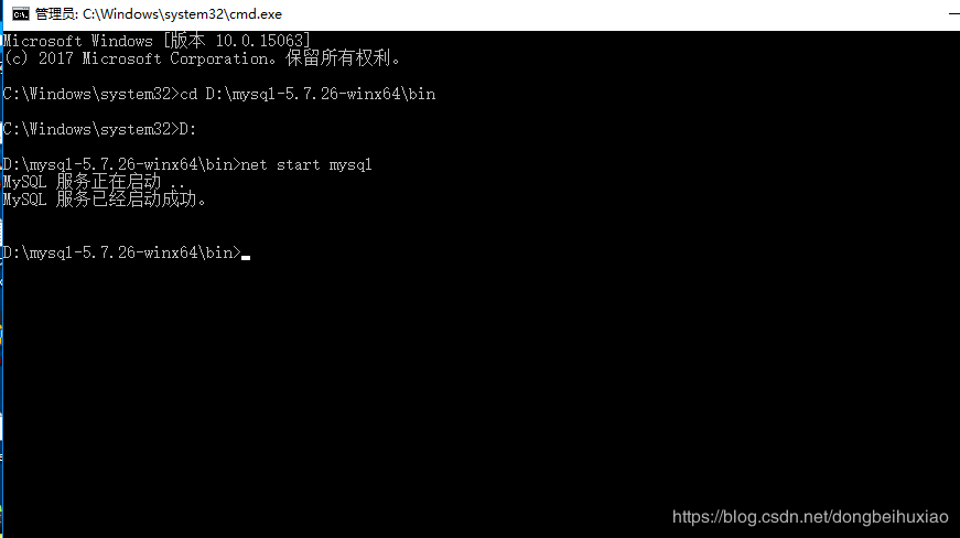7、运行net start mysql命令,启动服务