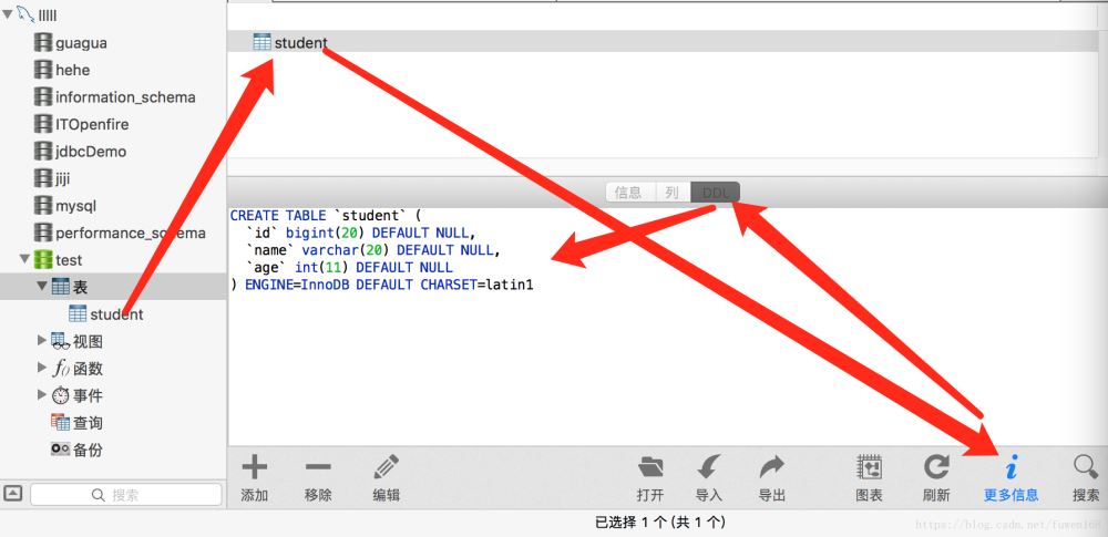 用naVicate的命令行来查看该连接下有多少个数据库:先选择连接->导航栏上面的工具->命令列界面,此时会弹出一个命令窗口-> 输入:show databases;(注意后面一定要带分号)