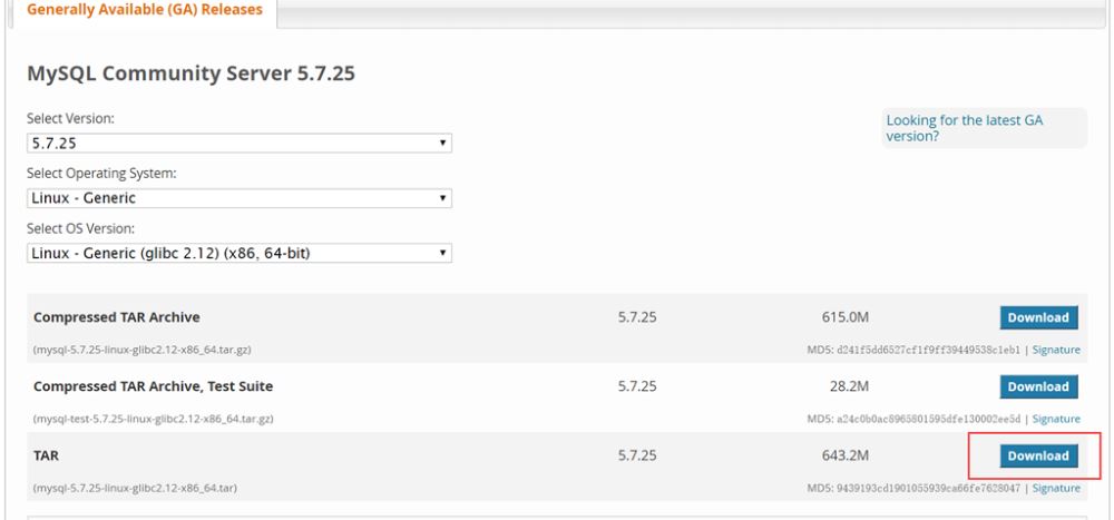 首先官网下载安装包https://dev.mysql.com/downloads/mysql/5.7.html#downloads