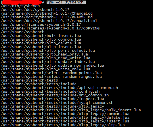 查询sysbench的安装信息,主要是测试mysql时,需要使用sysbench自带的lua脚本进行测试。如果使用快速安装的方式,默认的脚本路径为:/usr/share/sysbench。